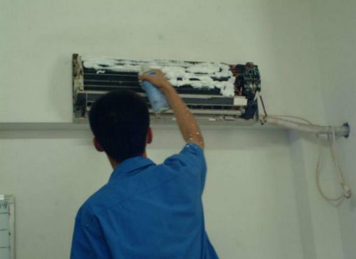 | 商州空调维修师傅给商州用户上门维修清洗空调。 |